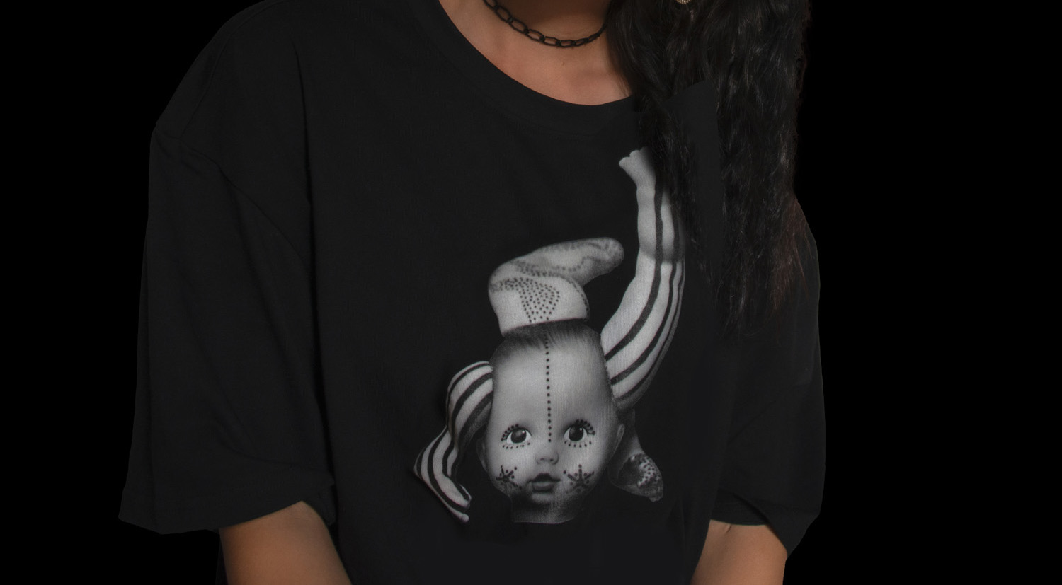 Meine Designs entstehen aus linearen Skizzen, die ich anschliessend in Adobe Photoshop digitalisiere. Sie bestehen hauptsächlich aus verschiedenen Gesichtern, die symbolische Bedeutungen tragen können.